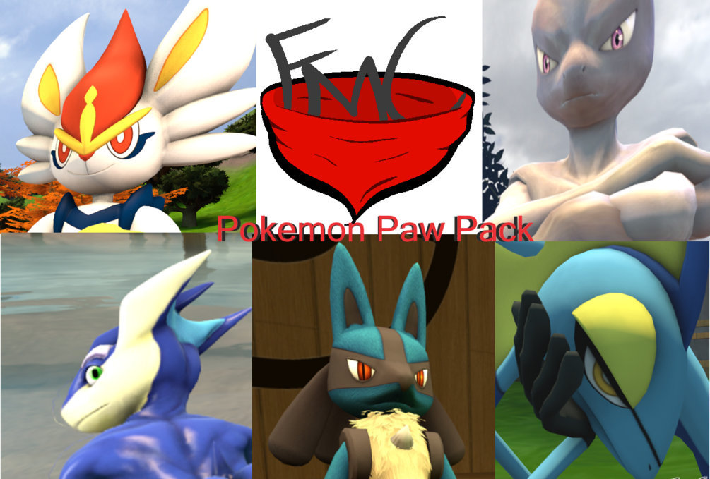 The Pokemon Paw Pack. Comes with 5 10 sec animations of 5 different Pokemon. Also includes a 10 sec alt for all animations and a 10 sec POV of each animation. Each animation also has a poster.